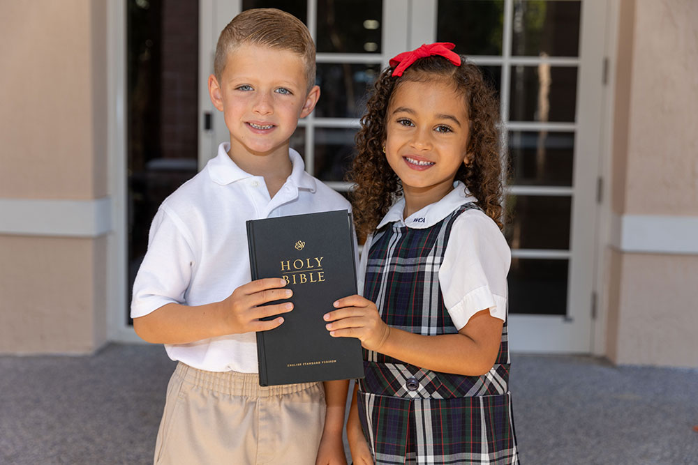As a Classical Christian School, WCA is dedicated to teaching and training every student for the glory of God and with excellence. Our instructional approach emphasizes the classical ideals of truth, virtue, and beauty, all through a distinctly Christian worldview. WCA’s curriculum is classically inspired and teaches for mastery through the foundation of knowledge and facts (grammar stage) in elementary classes; the emphasis on reason, relationships, and principles (logic stage) in middle school classes; and finally the dedication to effective and persuasive writing and speaking (rhetoric stage) in 8th grade. This last stage is typically taught in high school. In all areas, the focus is on teaching and modeling through a biblical worldview. With a classically inspired curriculum, students engage in subjects such as logic, rhetoric, science, mathematics, Bible, history, grammar, and classical literature. Alongside academics, the arts, and athletics, we develop both heart and mind for God’s purpose.